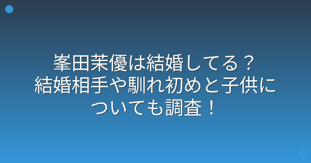 複数の報道や公式な発表を確認しても、峯田茉優さんが結婚したという情報は見つかりませんでした。