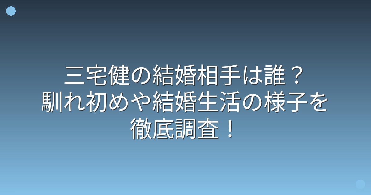 そこで今回は、三宅健さんの結婚相手や馴れ初め、結婚生活について詳しく見ていきましょう!
