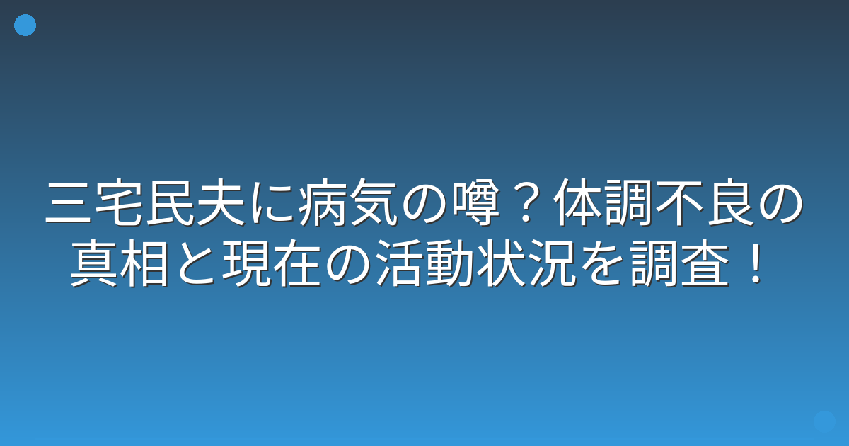 三宅民夫に病気の噂?体調不良の真相と現在の活動状況を調査!