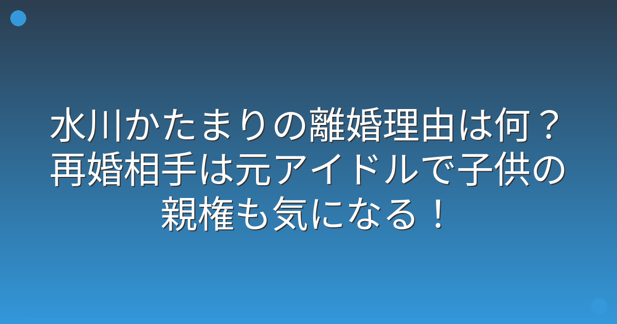 そこで今回は、水川かたまりさんの離婚理由や再婚相手、お子さんの親権などについて詳しく見ていきましょう!