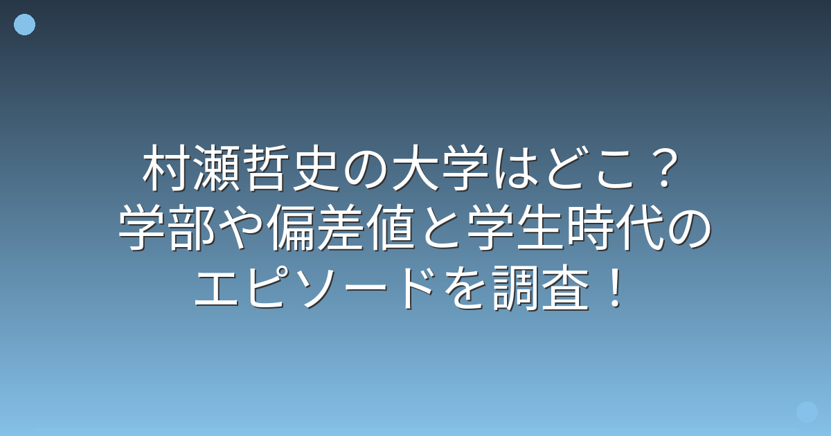 そこで今回は、村瀬哲史さんの大学や学部、偏差値、そして学生時代のエピソードについて詳しく見ていきましょう!