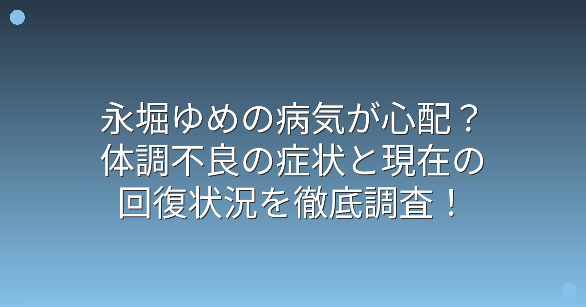 永堀ゆめさんの健康状態について気になっている方も多いのではないでしょうか。