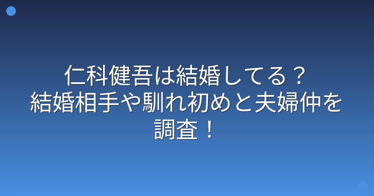 まず最も気になる仁科健吾さんの結婚についてですが、現在のところ結婚しているという公式な情報は確認されていません。