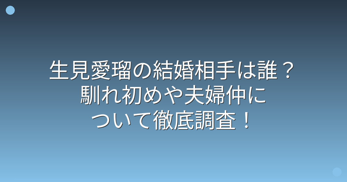 そこで今回は、生見愛瑠さんの結婚相手や馴れ初め、夫婦仲について詳しく見ていきましょう!