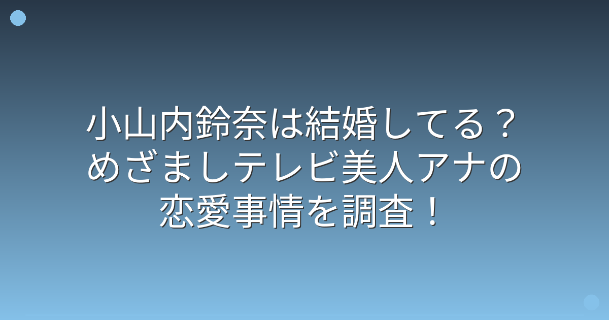 そんな小山内鈴奈さんについて、結婚しているのか、恋愛事情はどうなのか気になっている方も多いのではないでしょうか。