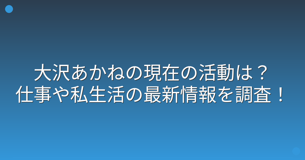 今回は、大沢あかねさんの現在の活動や仕事、私生活についてお伝えしてきました。