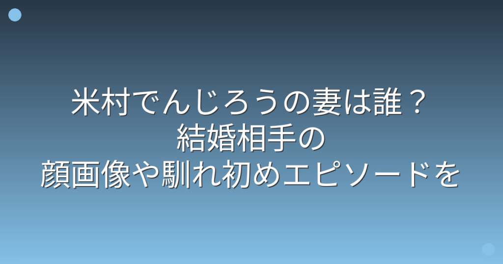 米村でんじろうの妻は誰?結婚相手の顔画像や馴れ初めエピソードを調査!