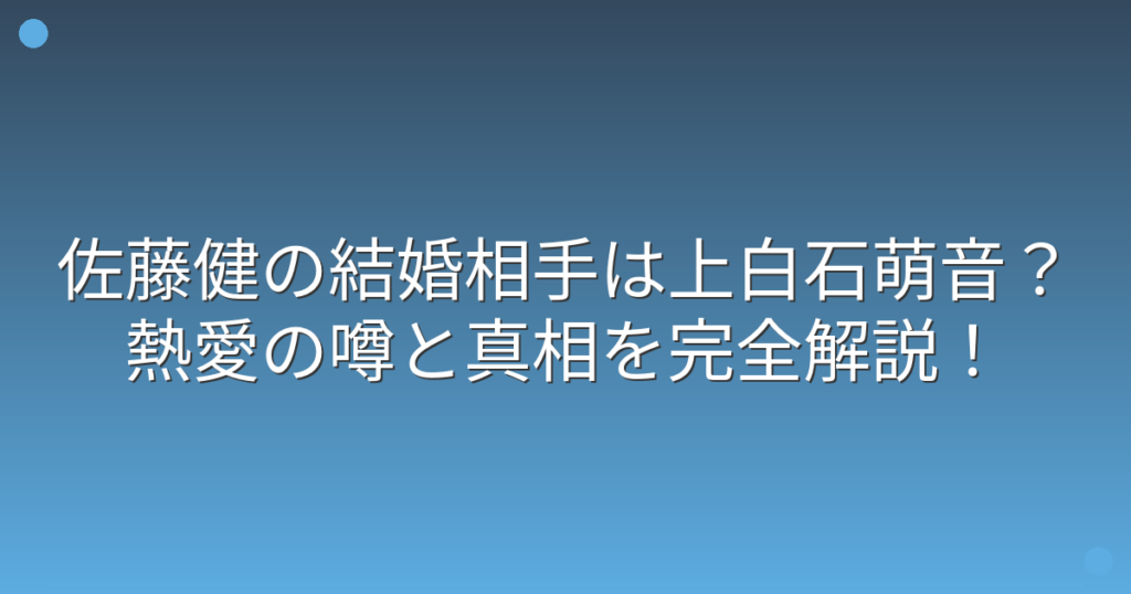 人気俳優の佐藤健さんの結婚について、ファンの間で大きな注目が集まっていますね。 特に共演者の上白石萌音さんとの結婚の噂が絶えず、SNSでも大きな話題となっています。 そこで今回は、佐藤健さんの結婚に関する最新情報や噂の真相について、詳しく見て... -