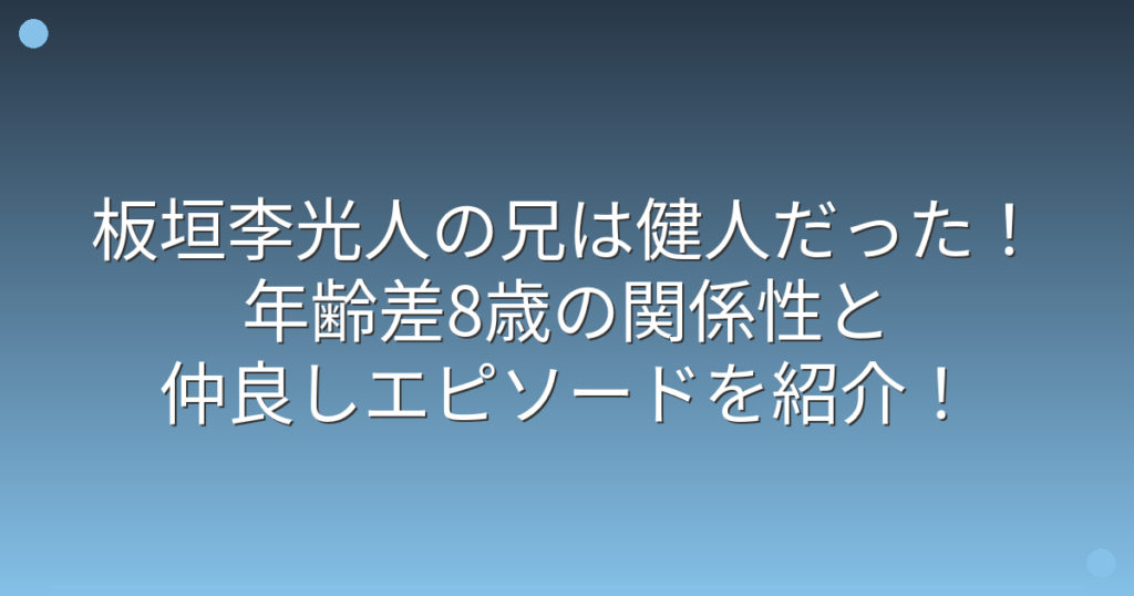 俳優として活躍中の板垣李光人さんの「兄」について、最近たくさんの注目が集まっていますね。 実は板垣李光人さんには血縁上の兄弟はいないものの、「兄」として慕う存在がいることが話題になっています。 そこで今回は、板垣李光人さんの「兄」について... -