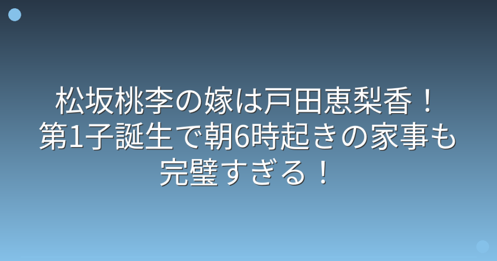 松坂桃李の嫁は戸田恵梨香!第1子誕生で朝6時起きの家事も完璧すぎる!