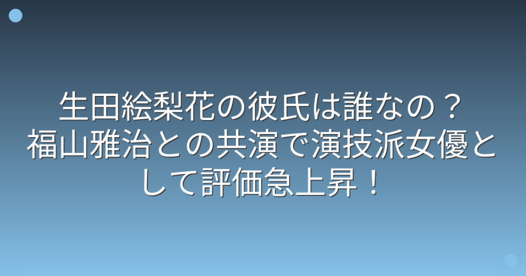 生田絵梨花の彼氏は誰なの?福山雅治との共演で演技派女優として評価急上昇!