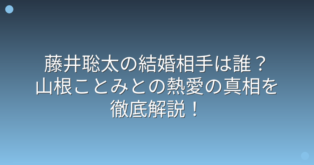 藤井聡太の結婚相手は誰?山根ことみとの熱愛の真相を徹底解説!