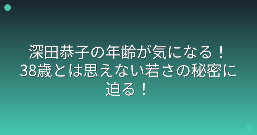 深田恭子の年齢が気になる!38歳とは思えない若さの秘密に迫る!