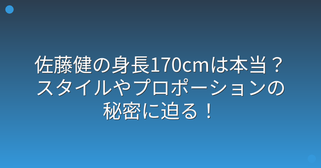 佐藤健の身長170cmは本当?スタイルやプロポーションの秘密に迫る!