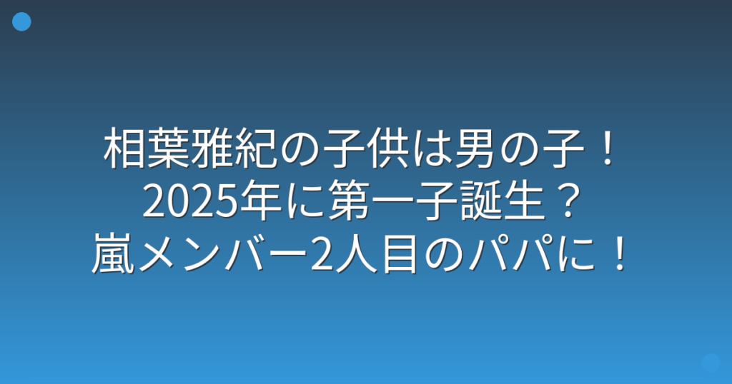 相葉雅紀の子供は男の子!2025年に第一子誕生?嵐メンバー2人目のパパに!