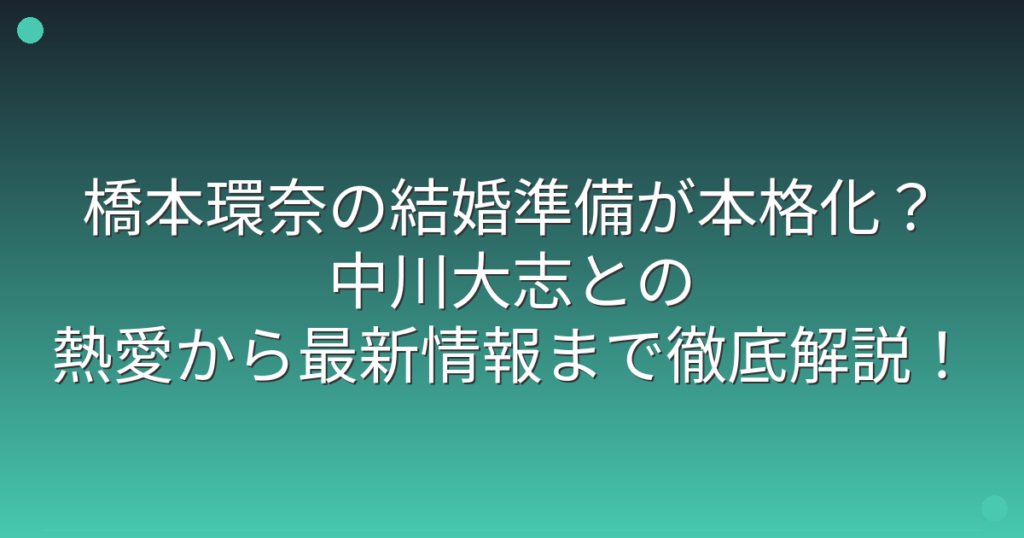 橋本環奈の結婚準備が本格化?中川大志との熱愛から最新情報まで徹底解説!