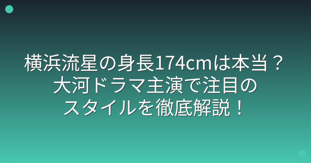 横浜流星の身長174cmは本当?大河ドラマ主演で注目のスタイルを徹底解説!