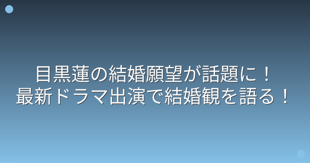 目黒蓮の結婚願望が話題に!最新ドラマ出演で結婚観を語る!