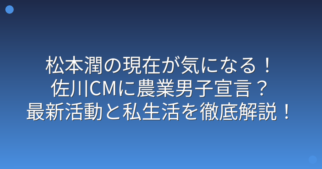 松本潤の現在が気になる!佐川CMに農業男子宣言?最新活動と私生活を徹底解説!