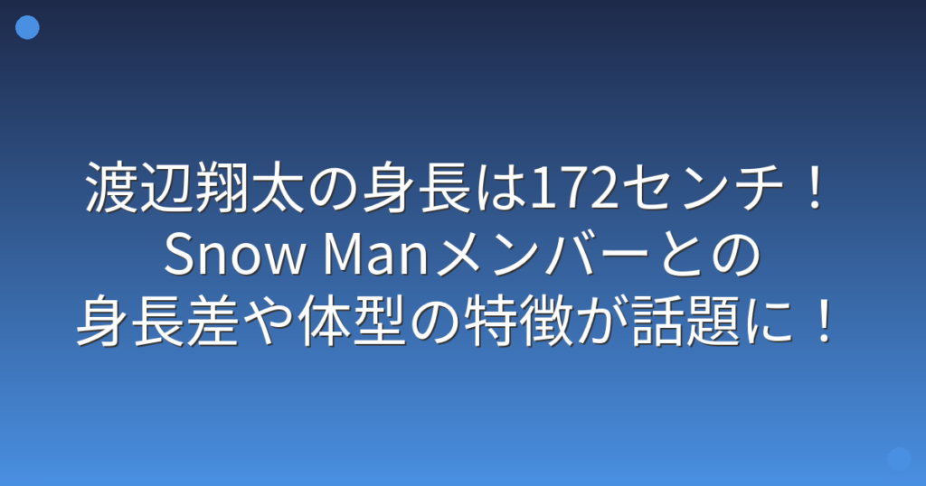 Snow Manのメンバーとして活躍する渡辺翔太さんの身長について、ファンの間で大きな注目を集めていますね。 グループ内でのバランスの取れたスタイルと安定感のあるパフォーマンスで、多くのファンを魅了している渡辺翔太さん。 そこで今回は、渡辺翔太さ... -