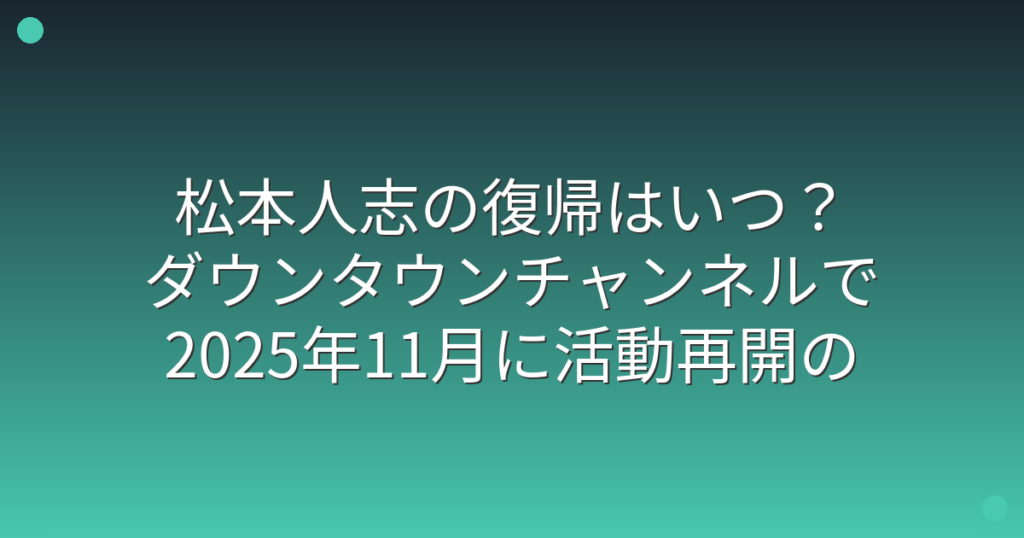 松本人志の復帰はいつ?ダウンタウンチャンネルで2025年11月に活動再開の可能性!