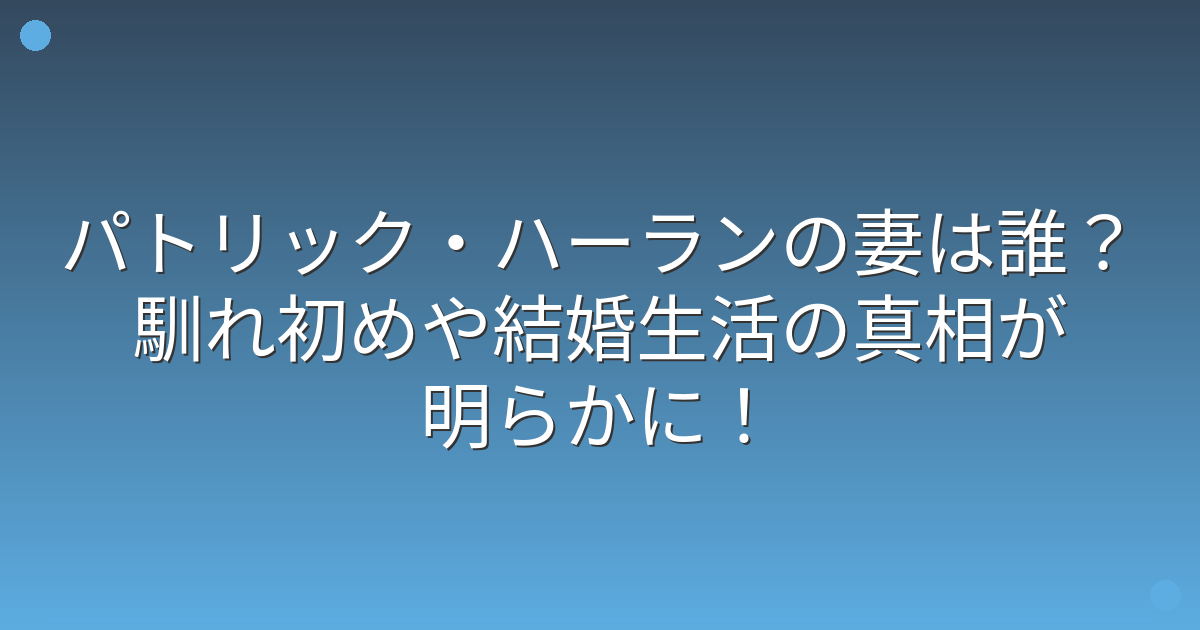 そこで今回は、パトリック・ハーランさんの妻は誰なのか、馴れ初めや結婚生活について詳しく見ていきましょう!