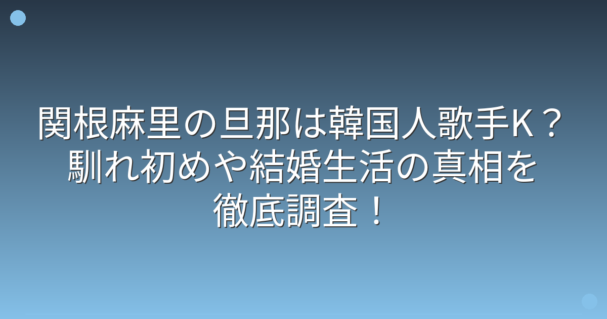 関根麻里さんの旦那さんは韓国人歌手のKさんで、音楽イベントでの出会いから交際を経て2014年に結婚されました。