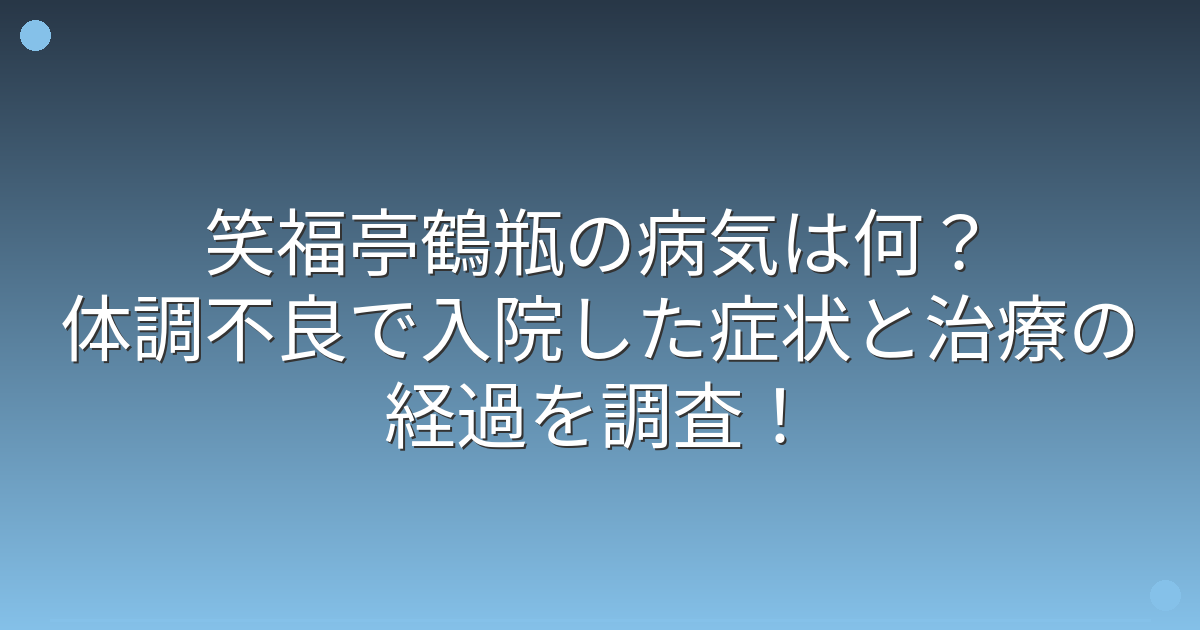 そこで今回は、笑福亭鶴瓶さんの病気の詳細や症状、治療の経過について詳しく見ていきましょう!