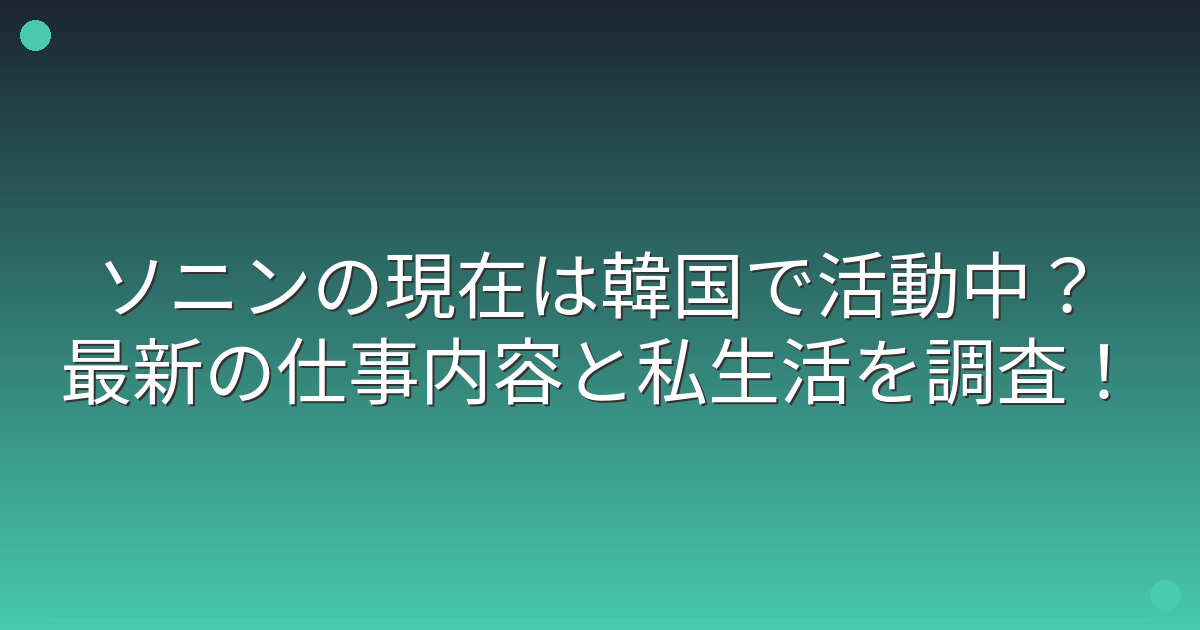 「ソニンさんは今何をしているの?」と気になっている方も多いようです。