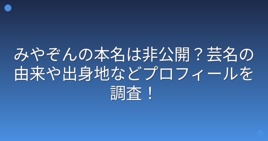 お笑いコンビ「ANZEN漫才」のみやぞんさんの本名について、ファンの間で話題になっていますね。 天然キャラで人気のみやぞんさんですが、本名は一体何というのでしょうか。 そこで今回は、みやぞんさんの本名や芸名の由来、プロフィールについて詳しく見て...