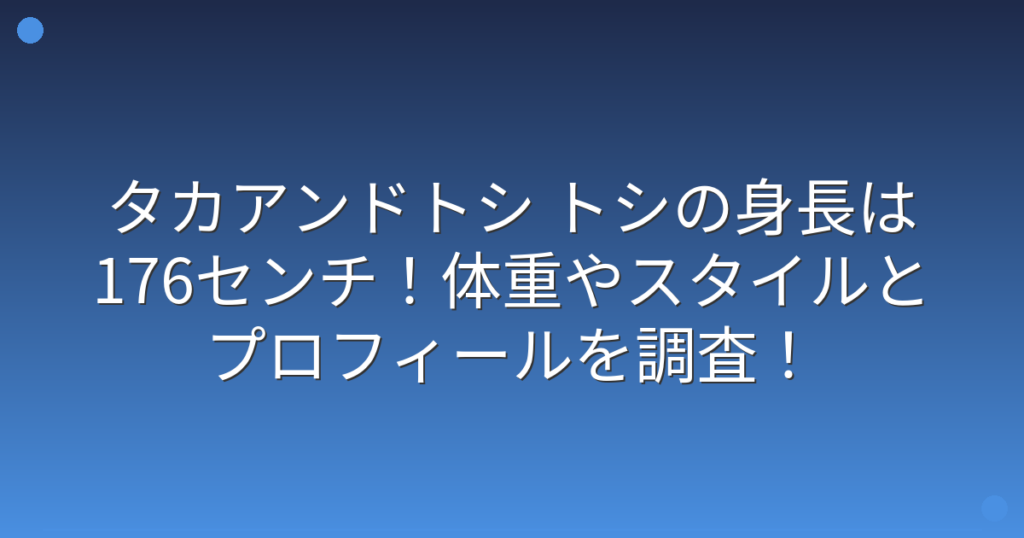 お笑いコンビ・タカアンドトシのトシさんの身長について、気になっている方が多いようですね。 相方のタカさんとの身長差や、テレビで見る印象から実際の身長が話題になっています。 そこで今回は、トシさんの身長や体重、スタイル、プロフィールについて...