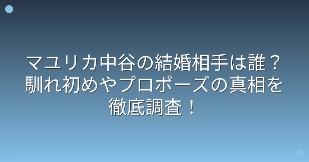 マユリカ中谷の結婚相手は誰?馴れ初めやプロポーズの真相を徹底調査!