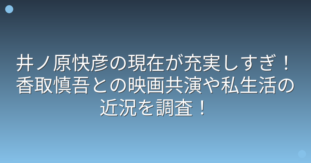 井ノ原快彦の現在が充実しすぎ!香取慎吾との映画共演や私生活の近況を調査!