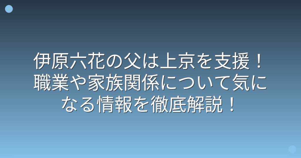 伊原六花の父は上京を支援!職業や家族関係について気になる情報を徹底解説!