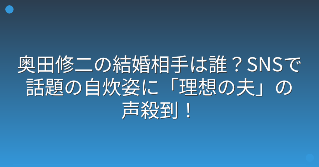 奥田修二の結婚相手は誰?SNSで話題の自炊姿に「理想の夫」の声殺到!