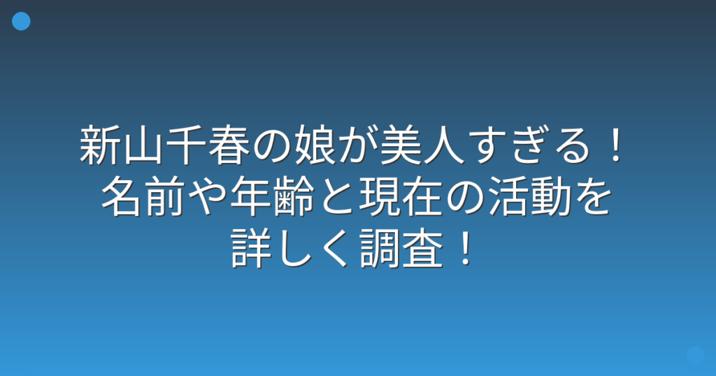 タレントの新山千春さんの娘さんが美人すぎると話題になっていますね。 新山千春さんといえば、グラビアアイドルやバラエティタレントとして長年活躍されている方ですが、娘さんについても注目が集まっています。 そこで今回は、新山千春さんの娘さんの名... -