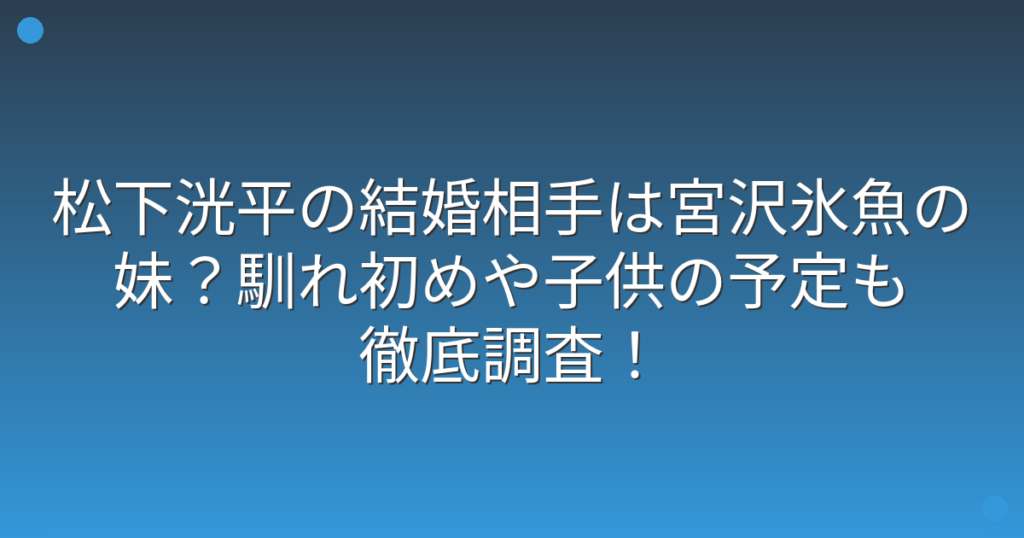 俳優として活躍中の松下洸平さんの結婚が話題になっていますね。 2024年に結婚を発表した松下洸平さんですが、お相手や馴れ初めについて気になっている方も多いのではないでしょうか。 そこで今回は、松下洸平さんの結婚相手や馴れ初め、子供の予定につい... -