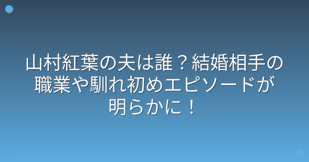 山村紅葉の夫は誰?結婚相手の職業や馴れ初めエピソードが明らかに!