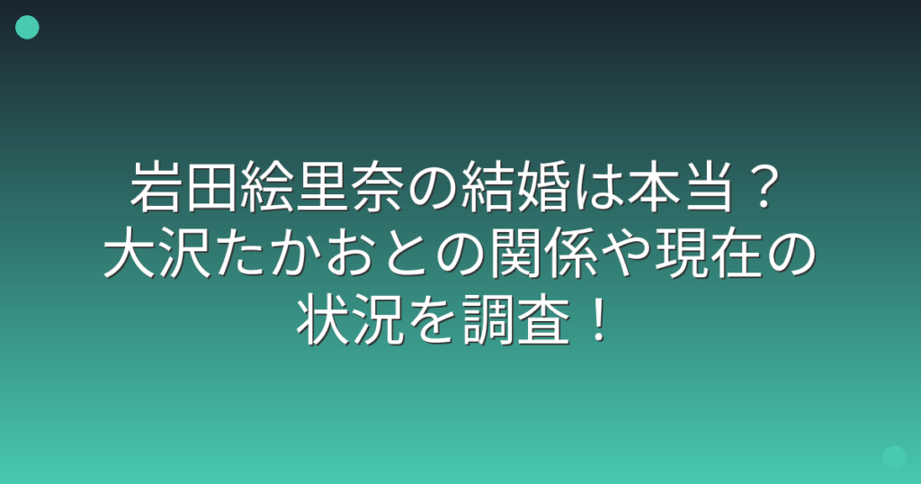 岩田絵里奈の結婚は本当?大沢たかおとの関係や現在の状況を調査!