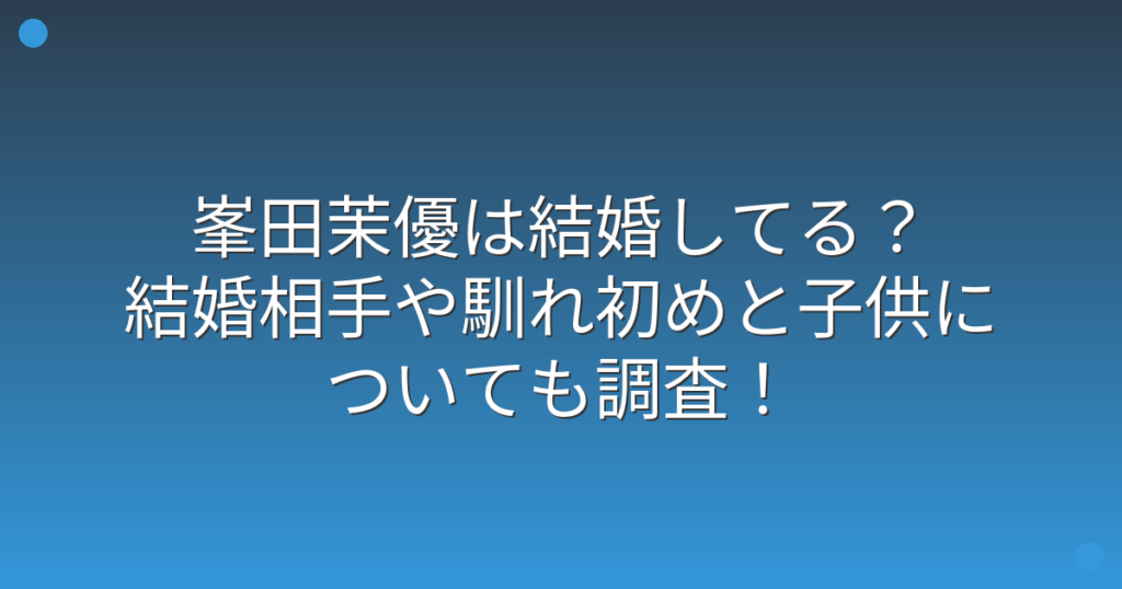 峯田茉優は結婚してる?結婚相手や馴れ初めと子供についても調査!