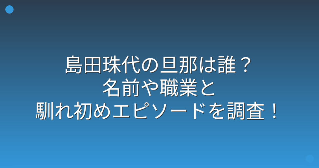 吉本新喜劇で長年活躍されている島田珠代さんの旦那さんについて、ファンの間で話題になっていますね。 関西では知らない人はいないほどの人気を誇る島田珠代さんですが、プライベートではどんな旦那さんと結婚されているのか気になります。 そこで今回は...