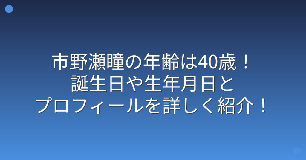 市野瀬瞳の年齢は40歳!誕生日や生年月日とプロフィールを詳しく紹介!