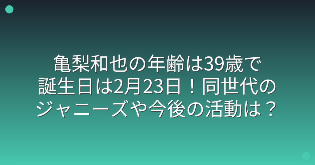 亀梨和也の年齢は39歳で誕生日は2月23日!同世代のジャニーズや今後の活動は?