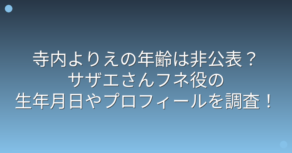 寺内よりえの年齢は非公表?サザエさんフネ役の生年月日やプロフィールを調査!