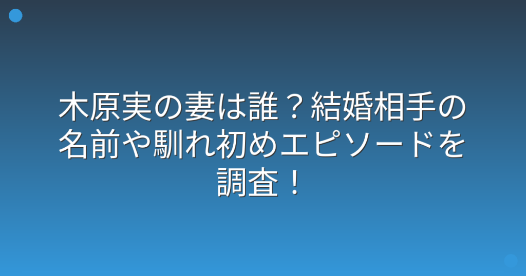 木原実の妻は誰?結婚相手の名前や馴れ初めエピソードを調査!