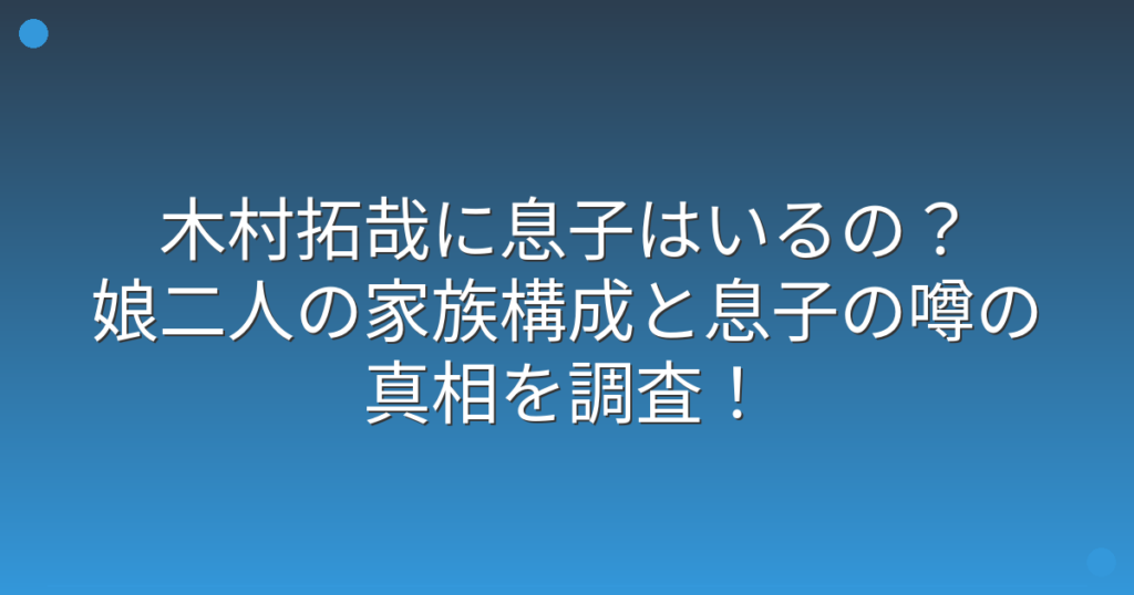 木村拓哉に息子はいるの?娘二人の家族構成と息子の噂の真相を調査!
