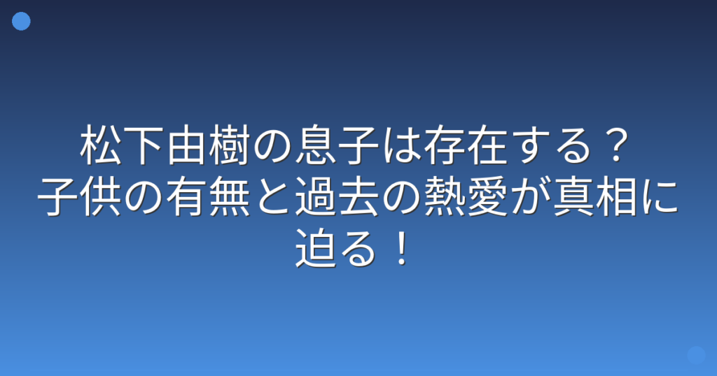 松下由樹の息子は存在する?子供の有無と過去の熱愛が真相に迫る!