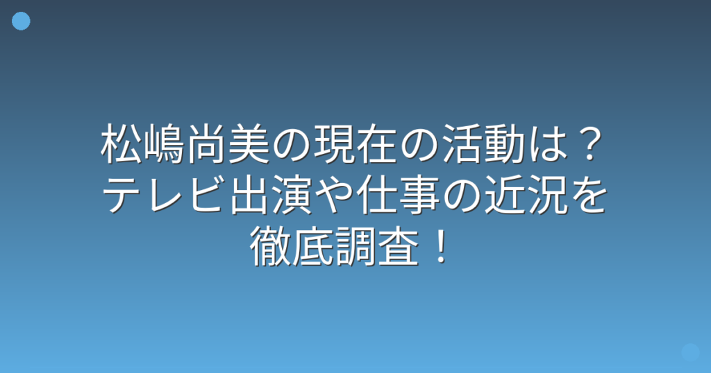 松嶋尚美の現在の活動は?テレビ出演や仕事の近況を徹底調査!