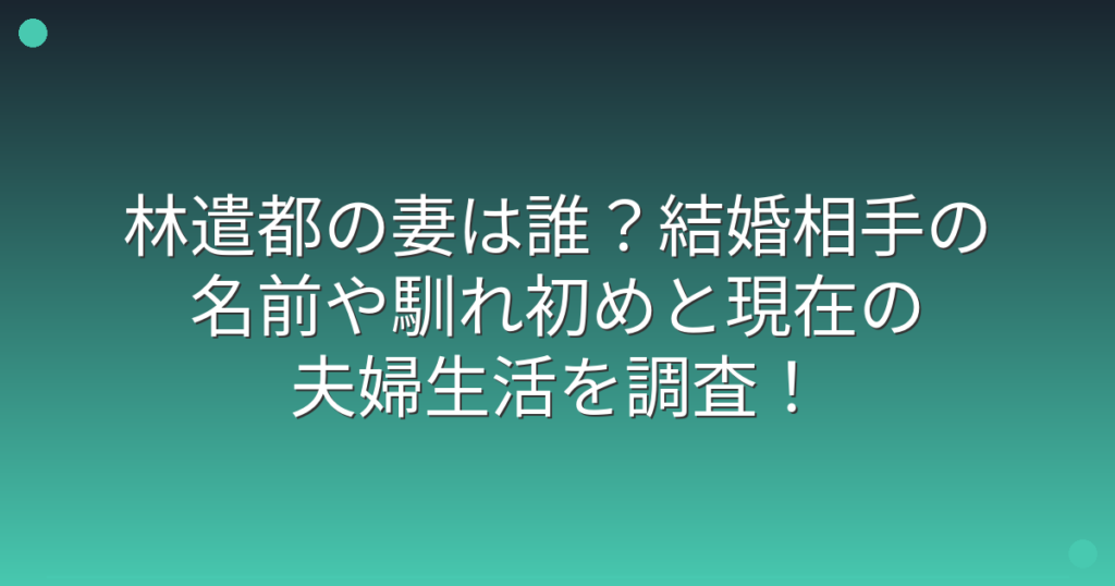 俳優の林遣都さんの妻について、ファンの間で話題になっていますね。 人気俳優として活躍する林遣都さんですが、結婚相手はどんな方なのか気になっている人も多いのではないでしょうか。 そこで今回は、林遣都さんの妻は誰なのか、馴れ初めや現在の夫婦生...
