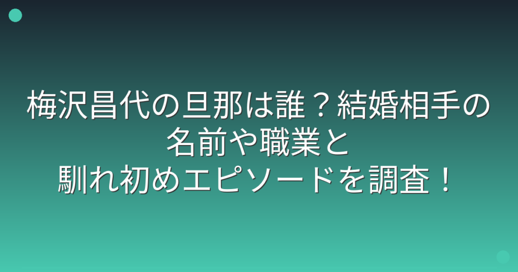 梅沢昌代の旦那は誰?結婚相手の名前や職業と馴れ初めエピソードを調査!